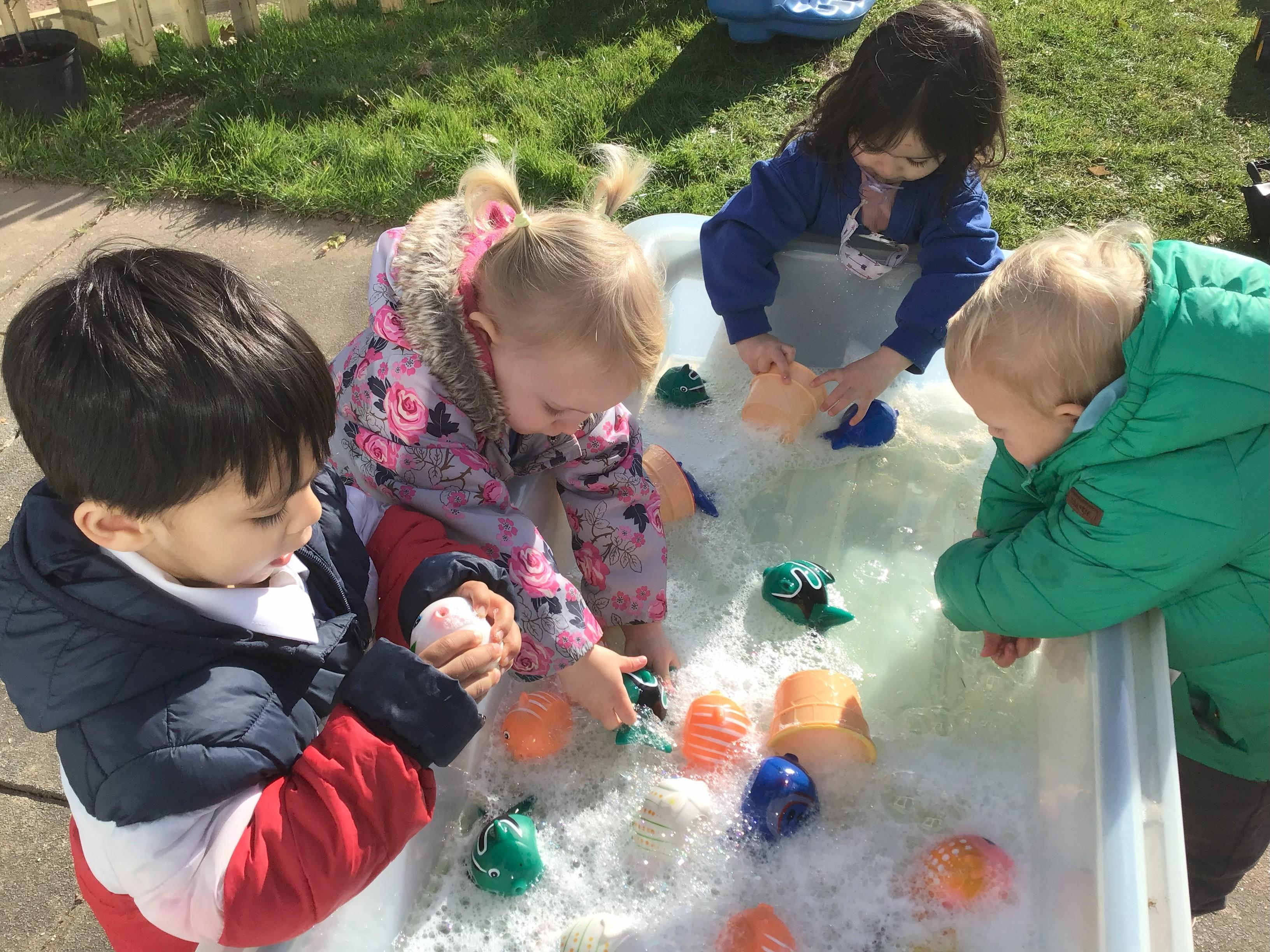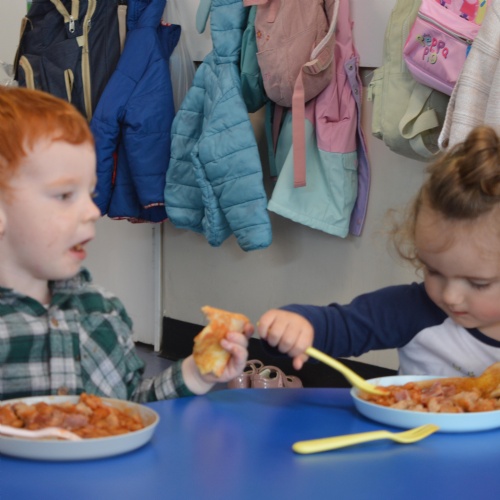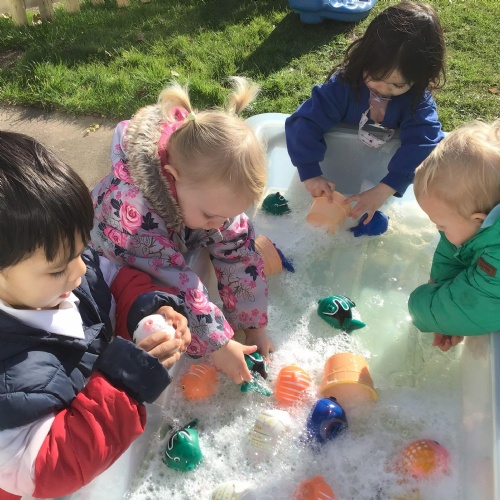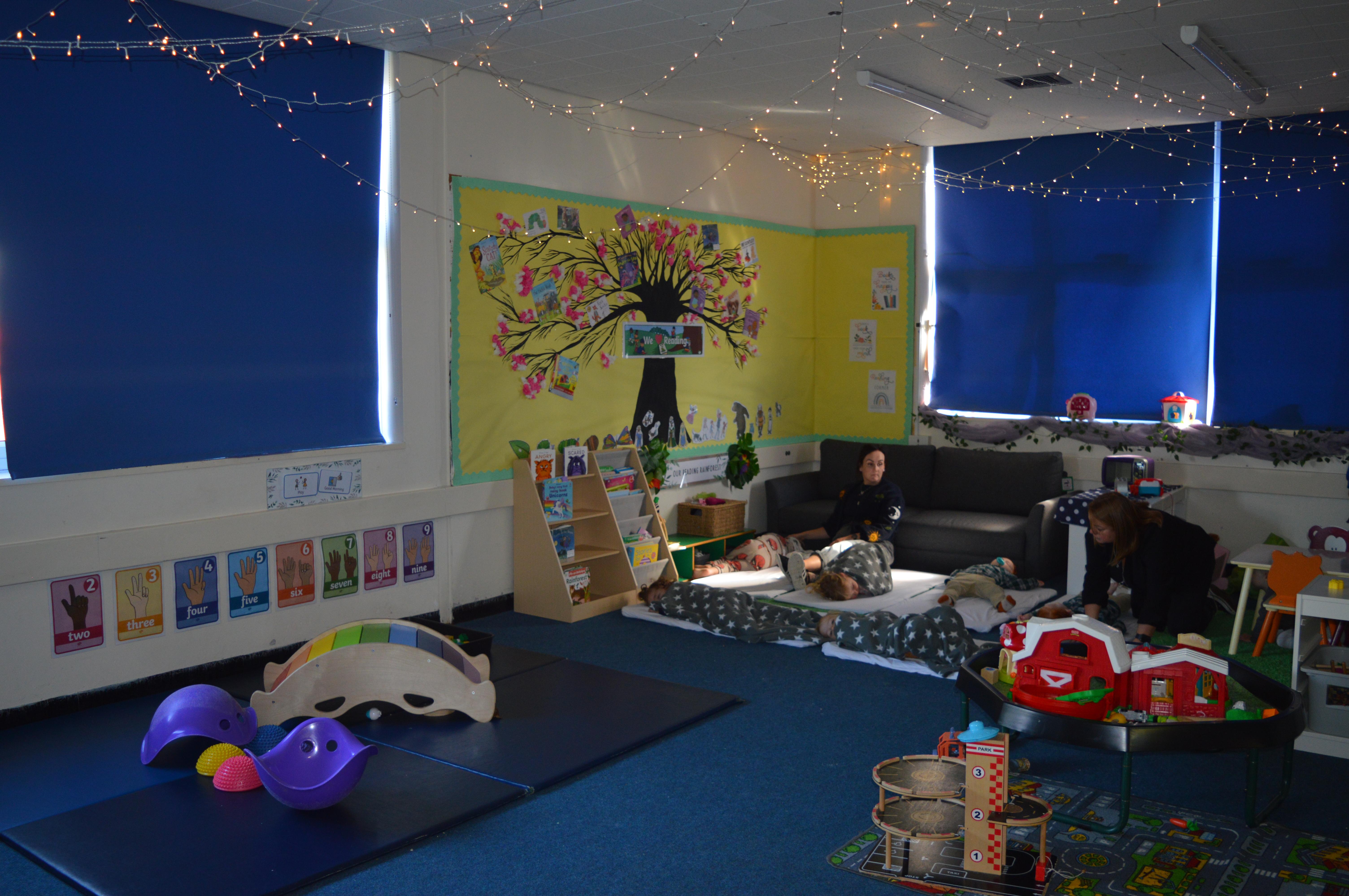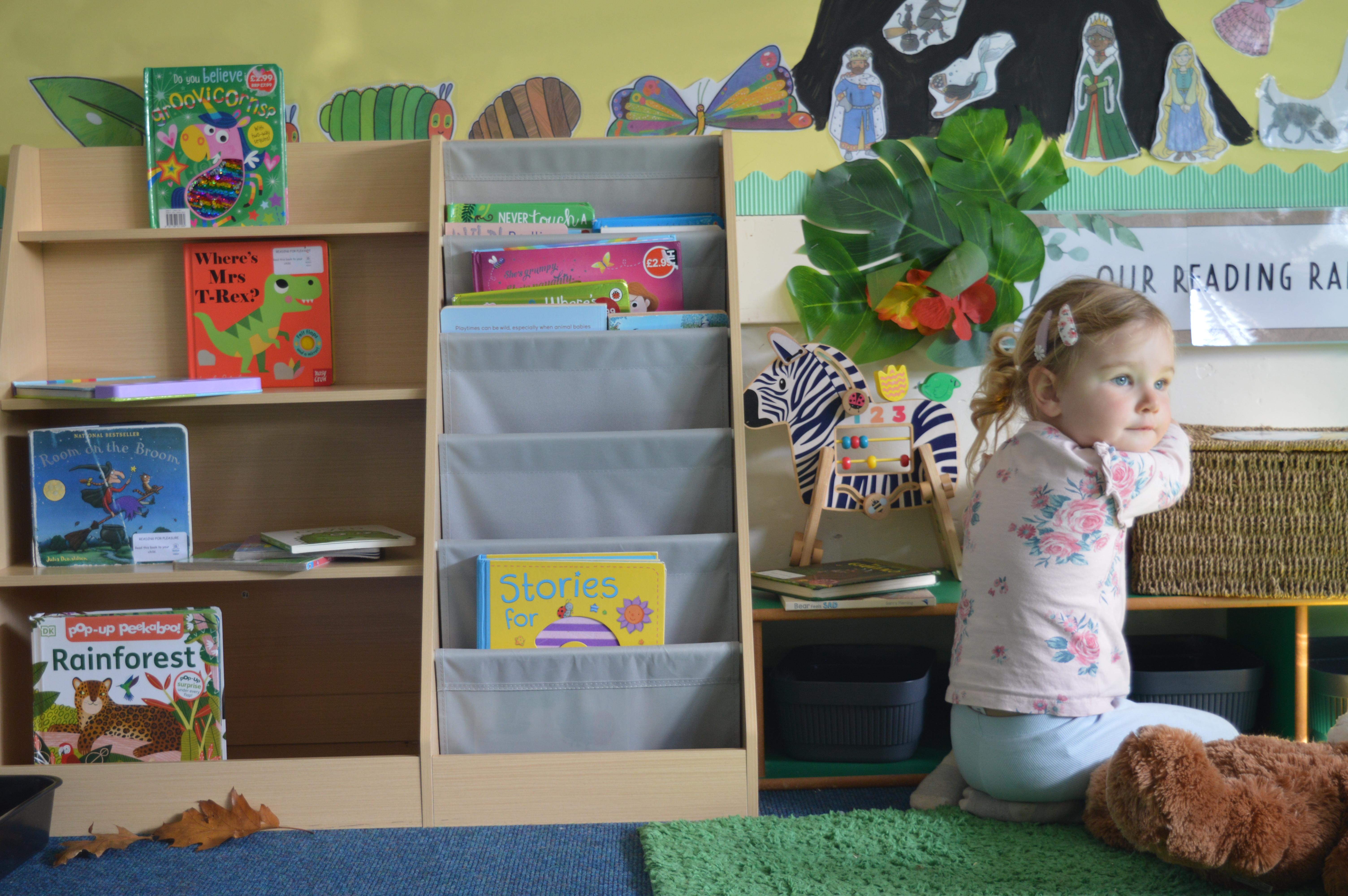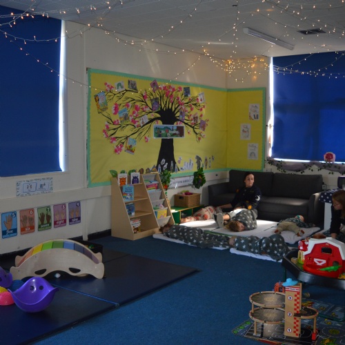 The classroom is divided into dedicated areas to allow free flow play in all the areas of learning including a role play corner, numeracy area, creative area, book corner etc.  The children also have access to a safe and secure outdoor play space with multiple learning areas.