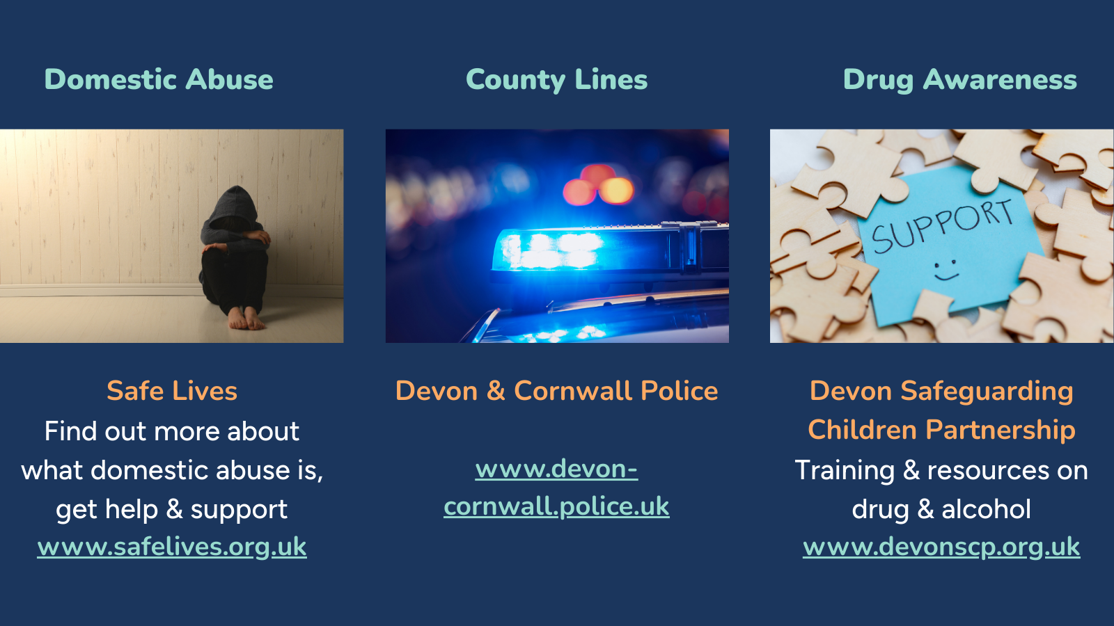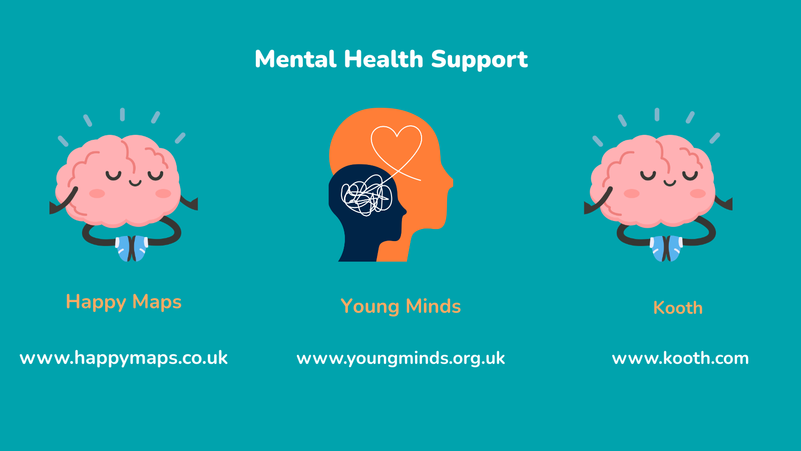 We also work with a number of agencies and charities when specific mental health challenges are identified.