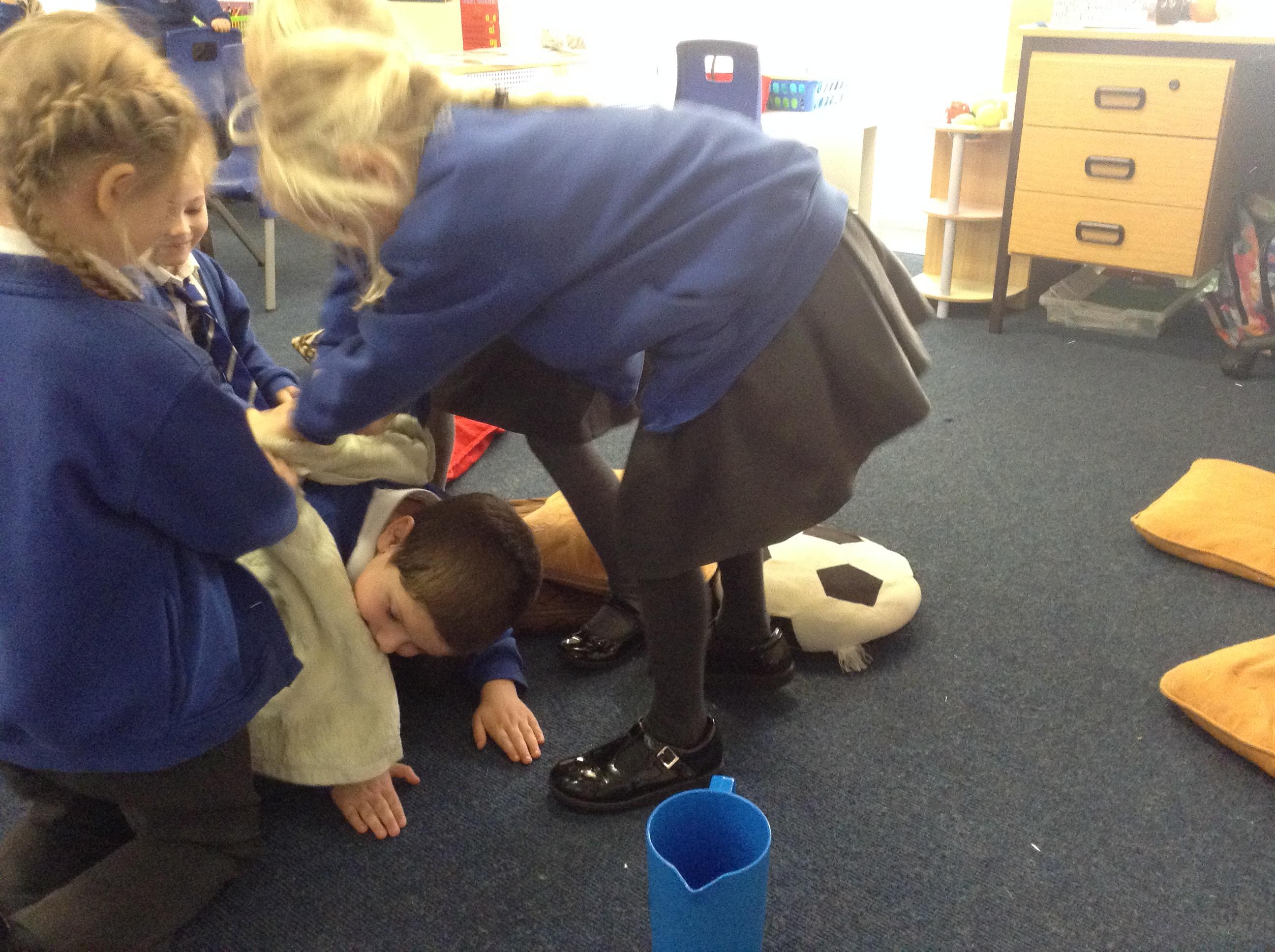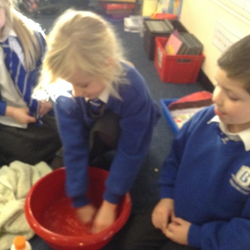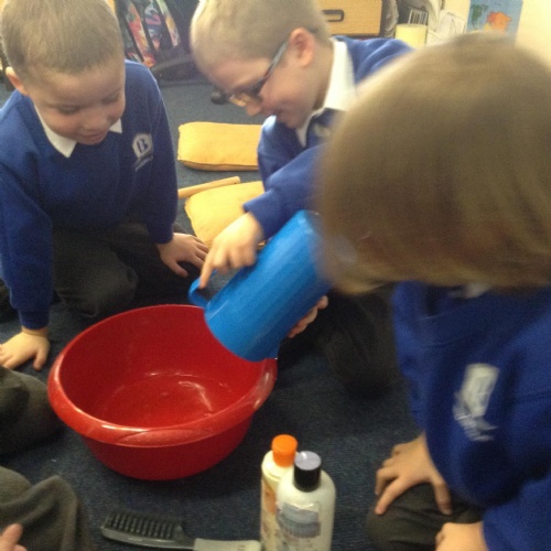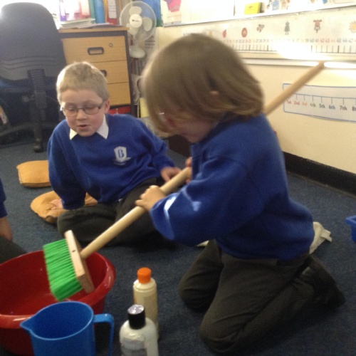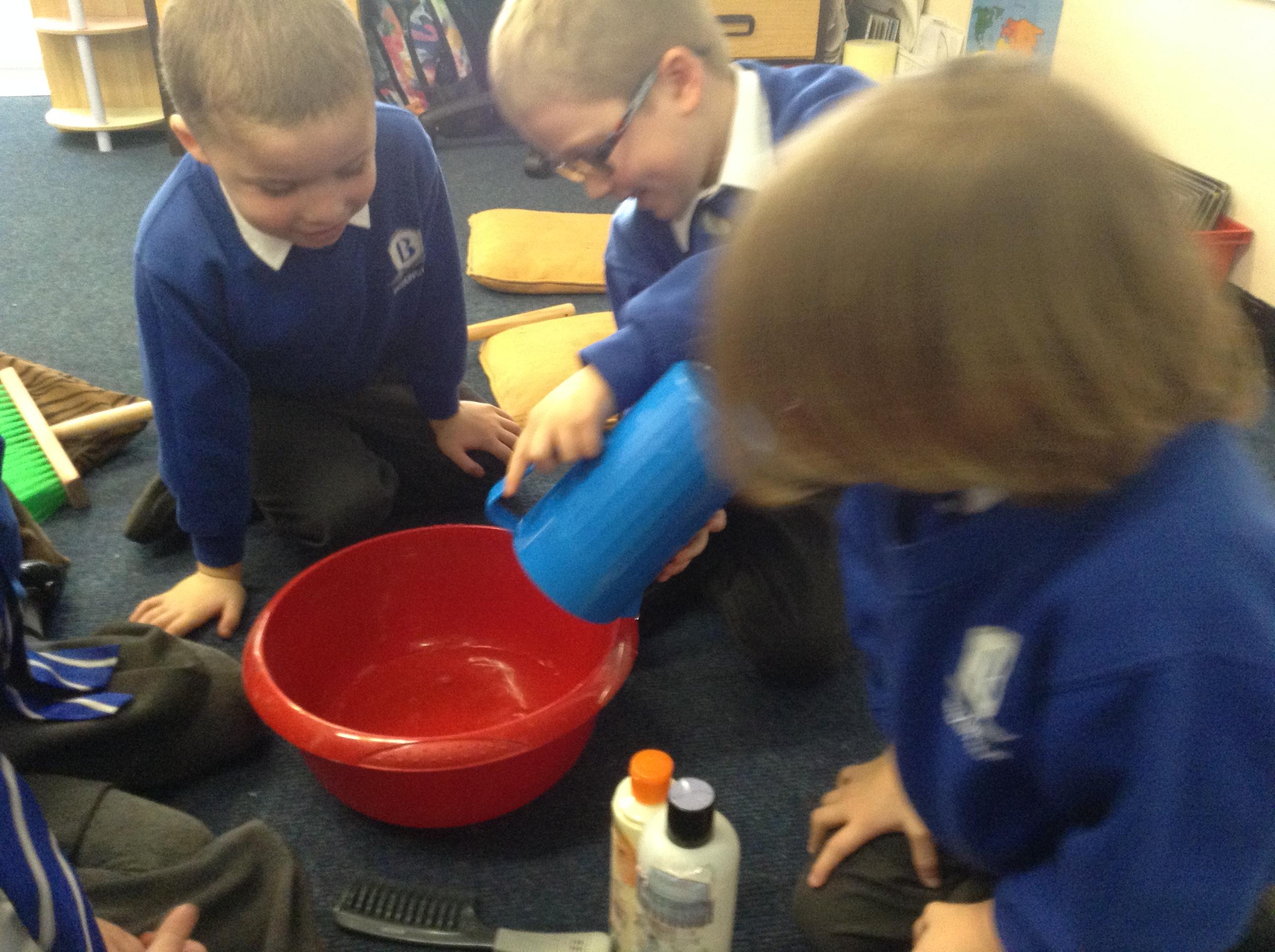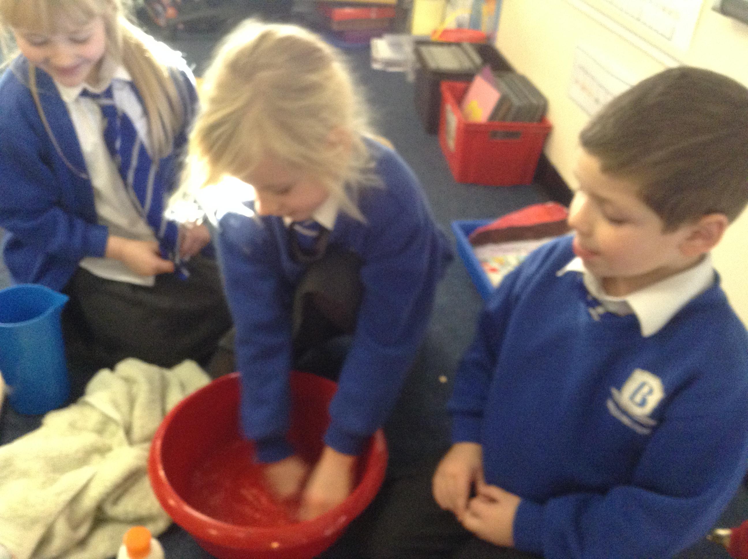 We acted out washing a woolly mammoth to help us with instruction writing!