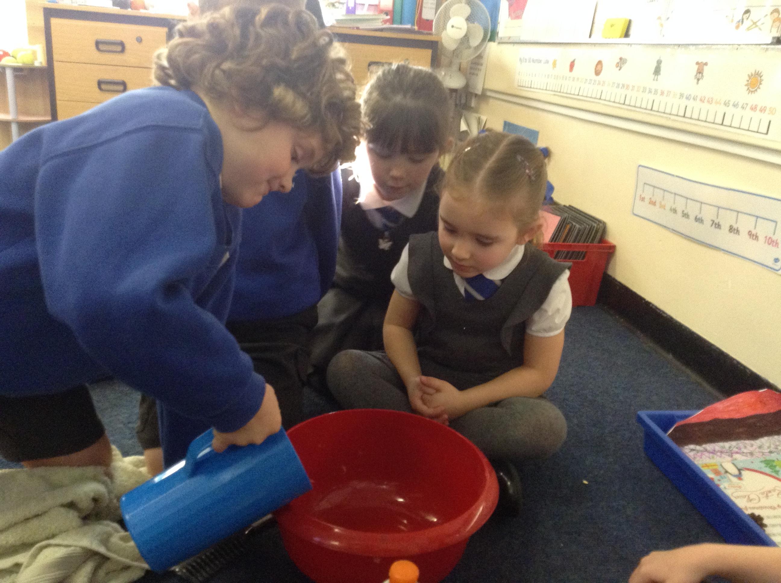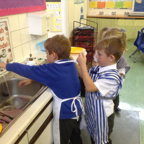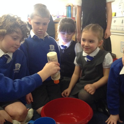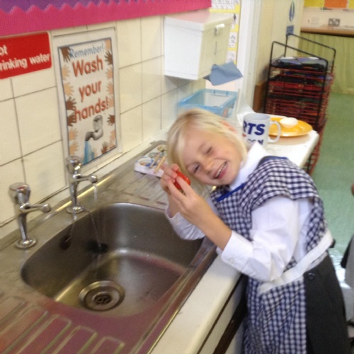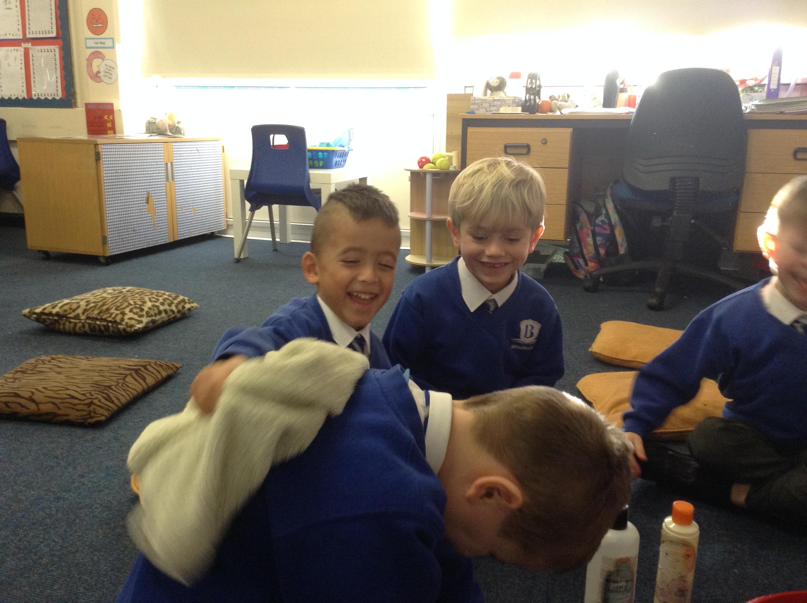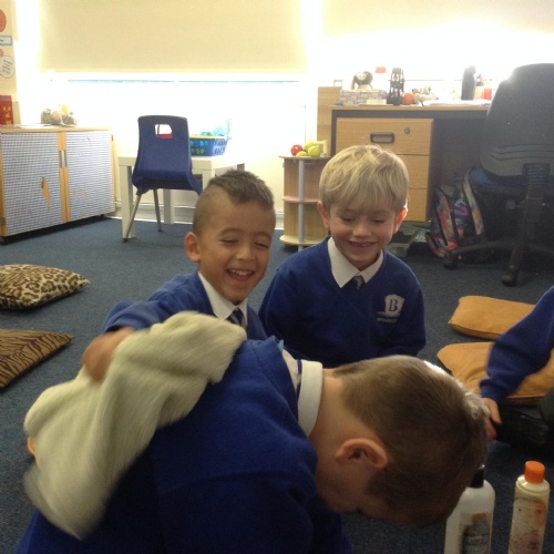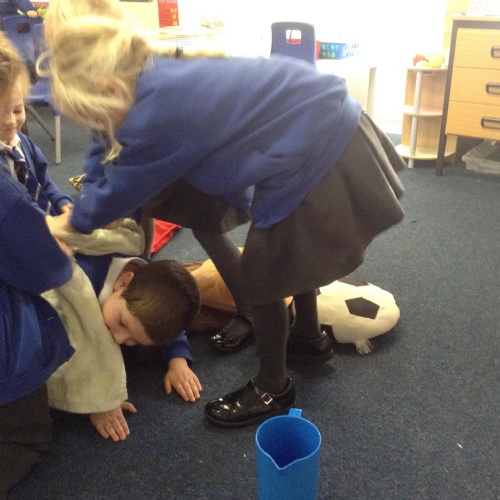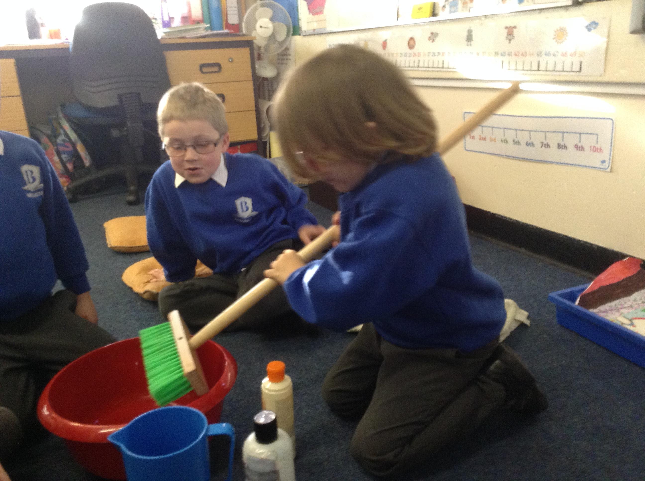 We acted out washing a woolly mammoth to help us with instruction writing!