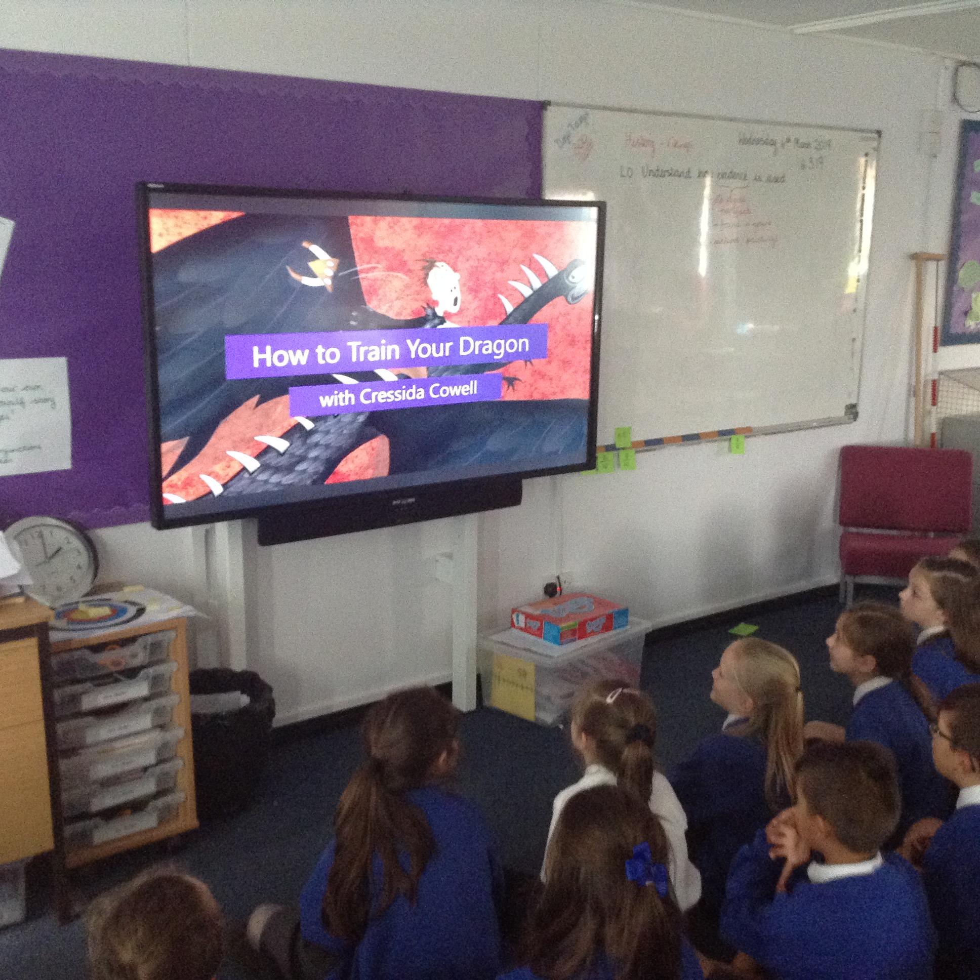 Today's book week activity - Skype session with Cressida Cowell, author of 'How to Train your Dragon'. 6.3.19