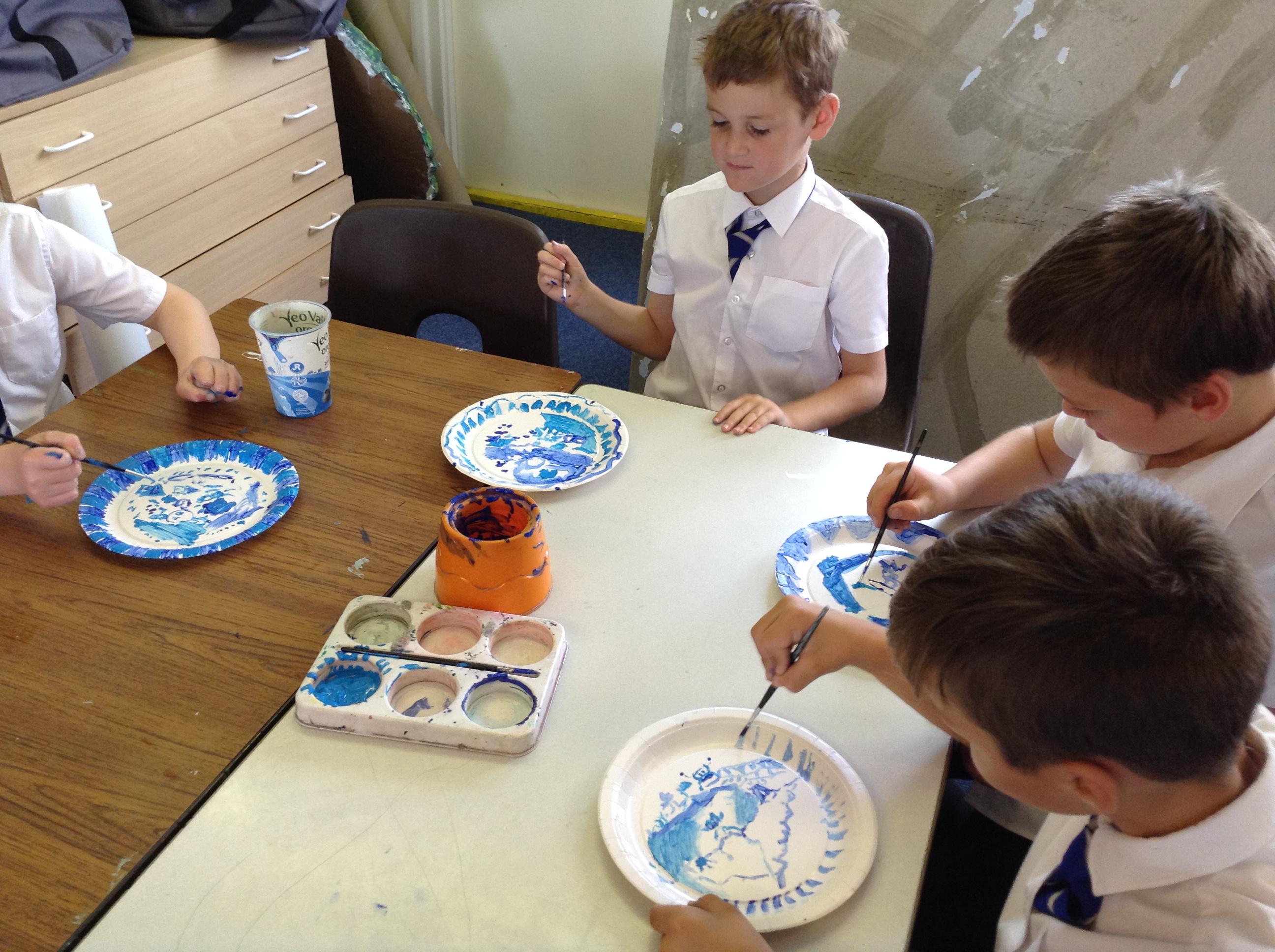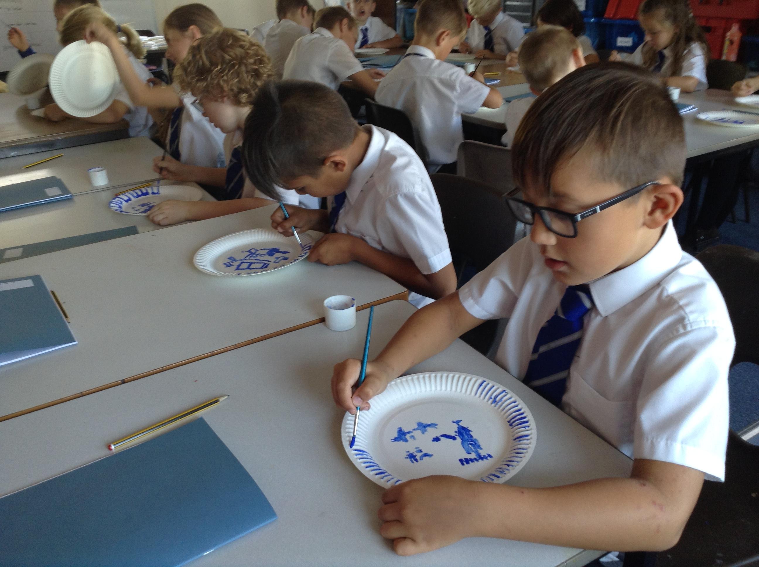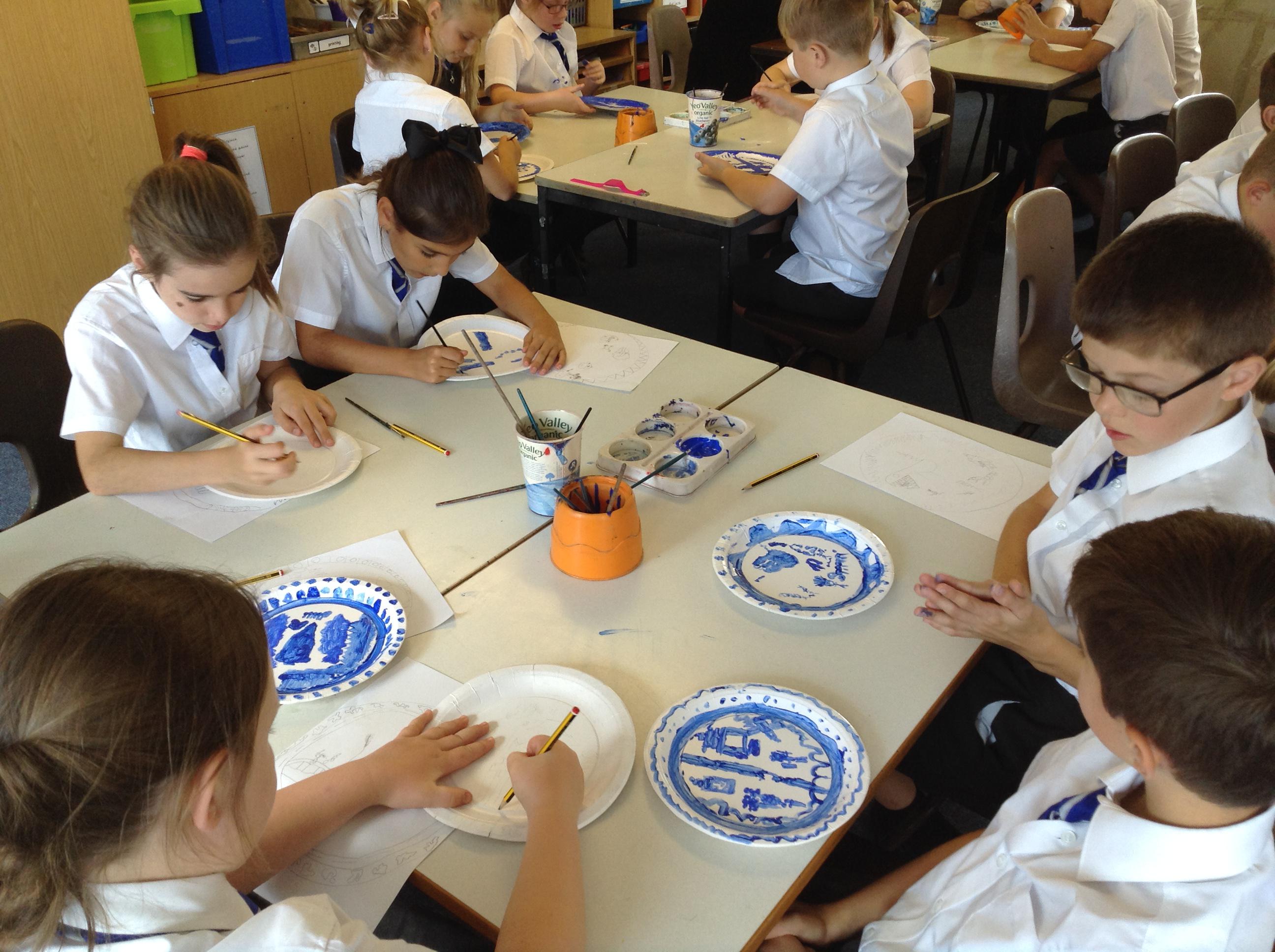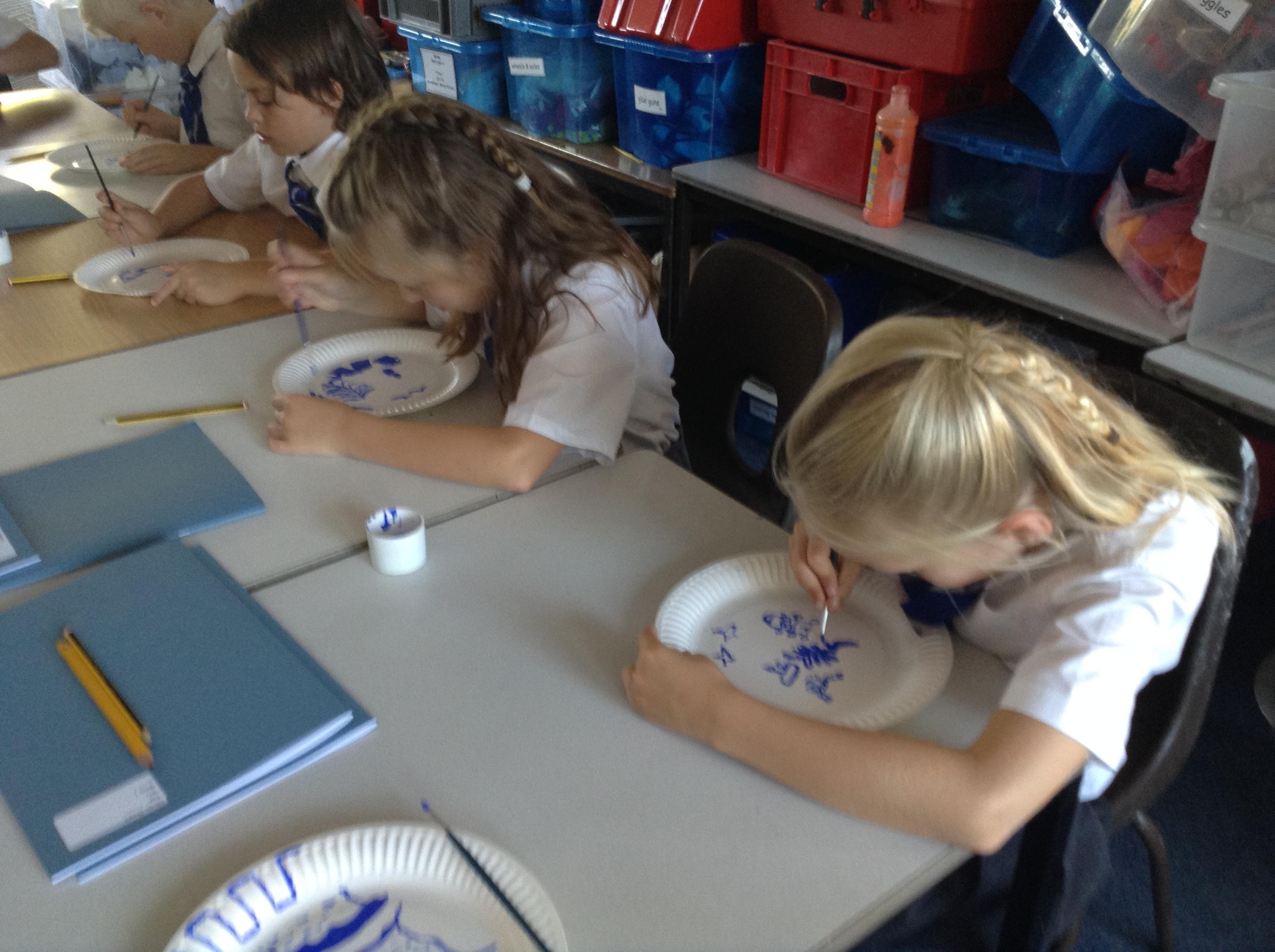 Artists at work! 4W creating Willow Pattern plates this afternoon. 3.10.18