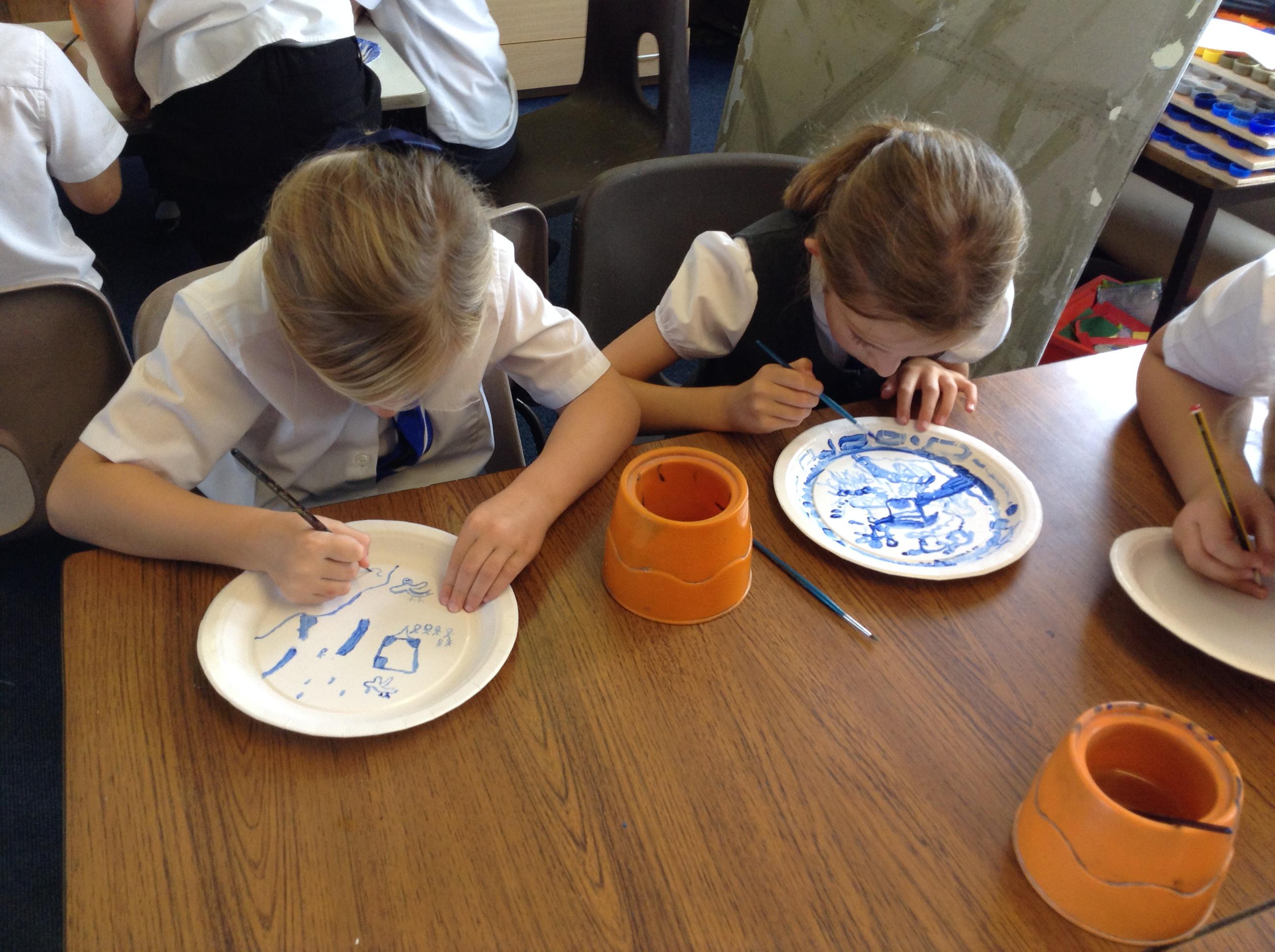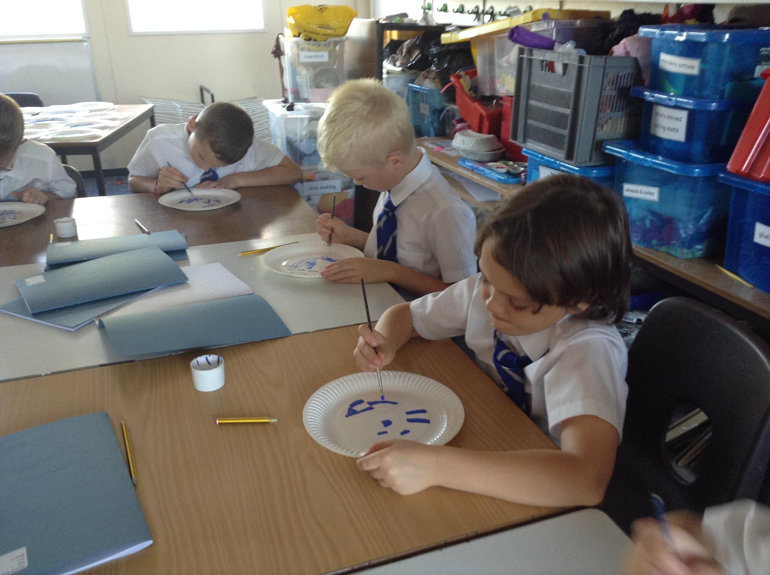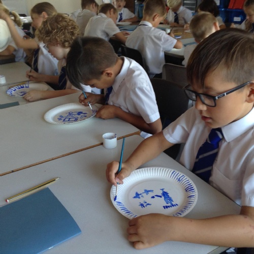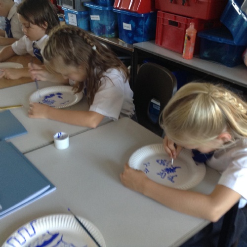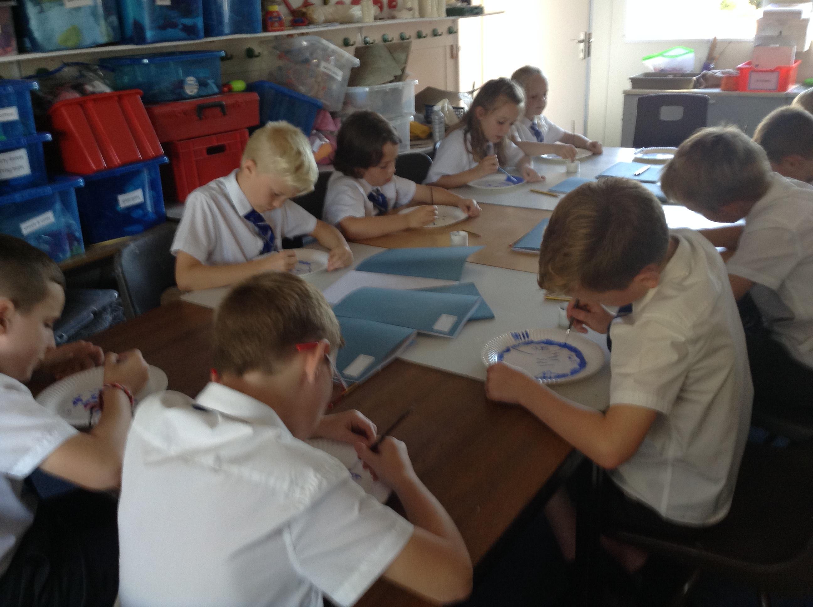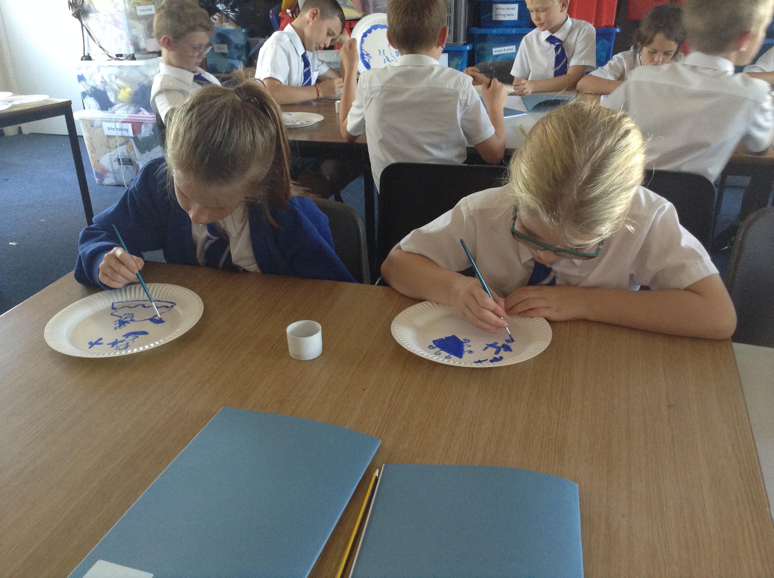 Artists at work! 4W creating Willow Pattern plates this afternoon. 3.10.18