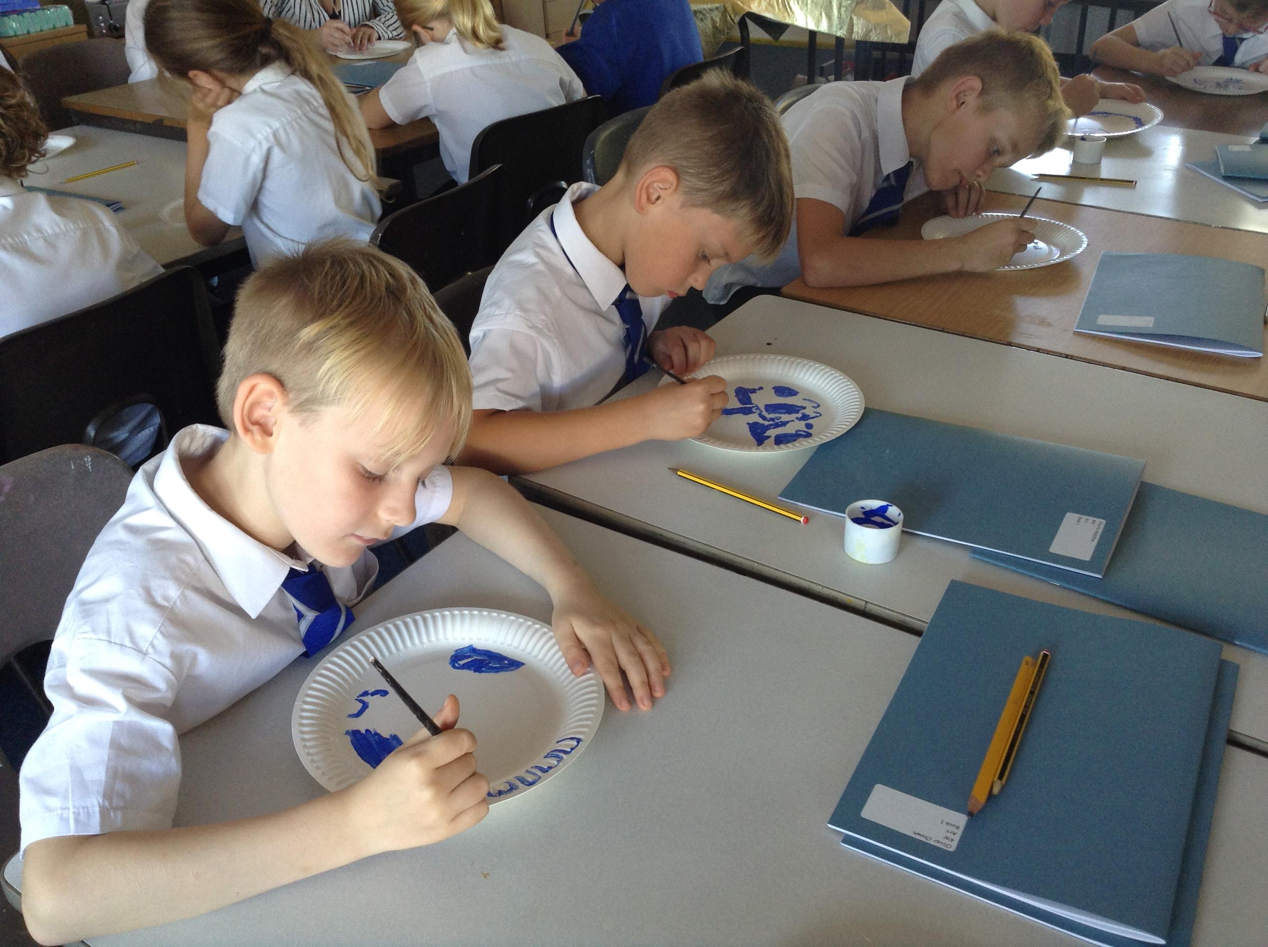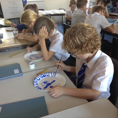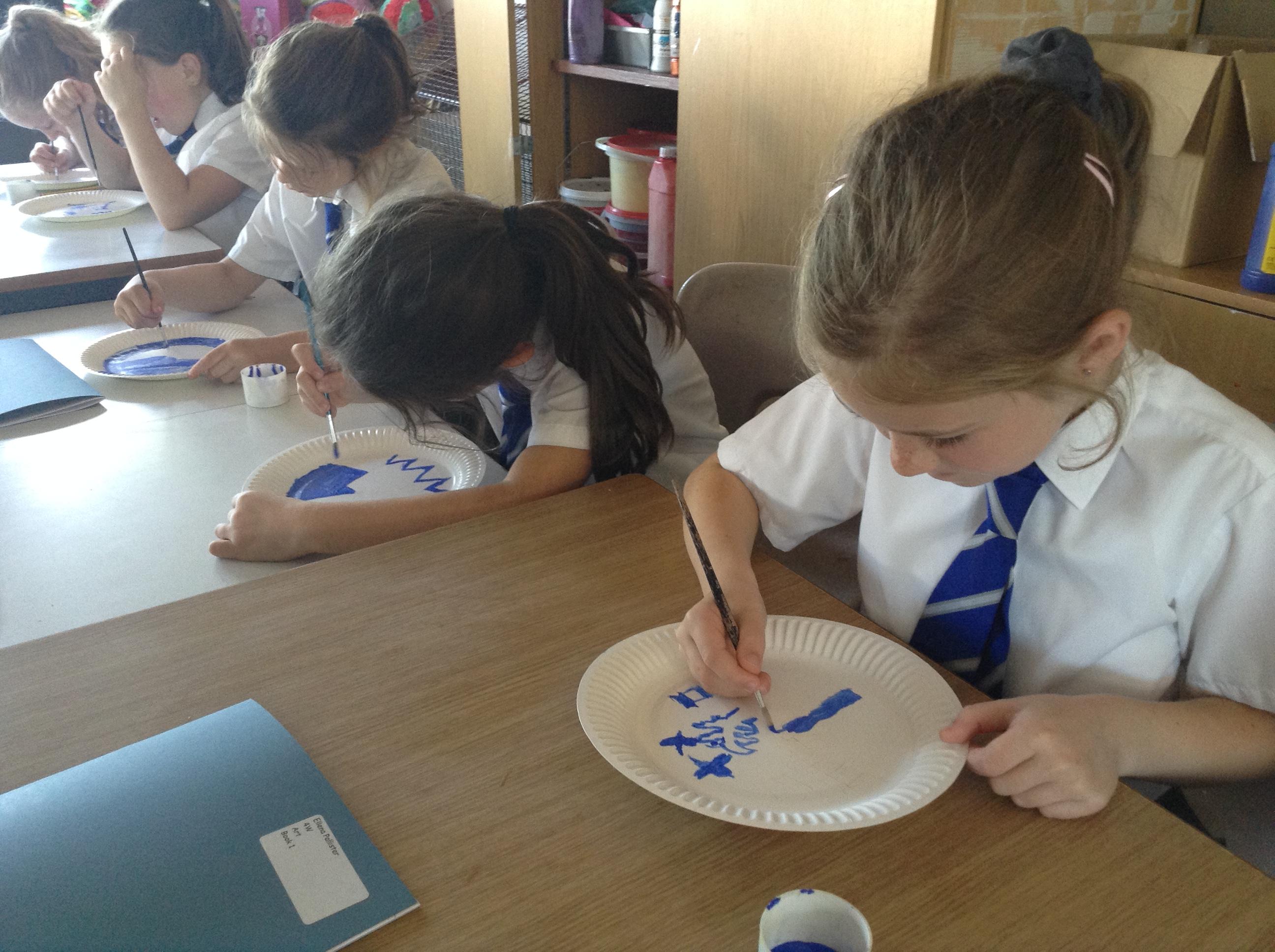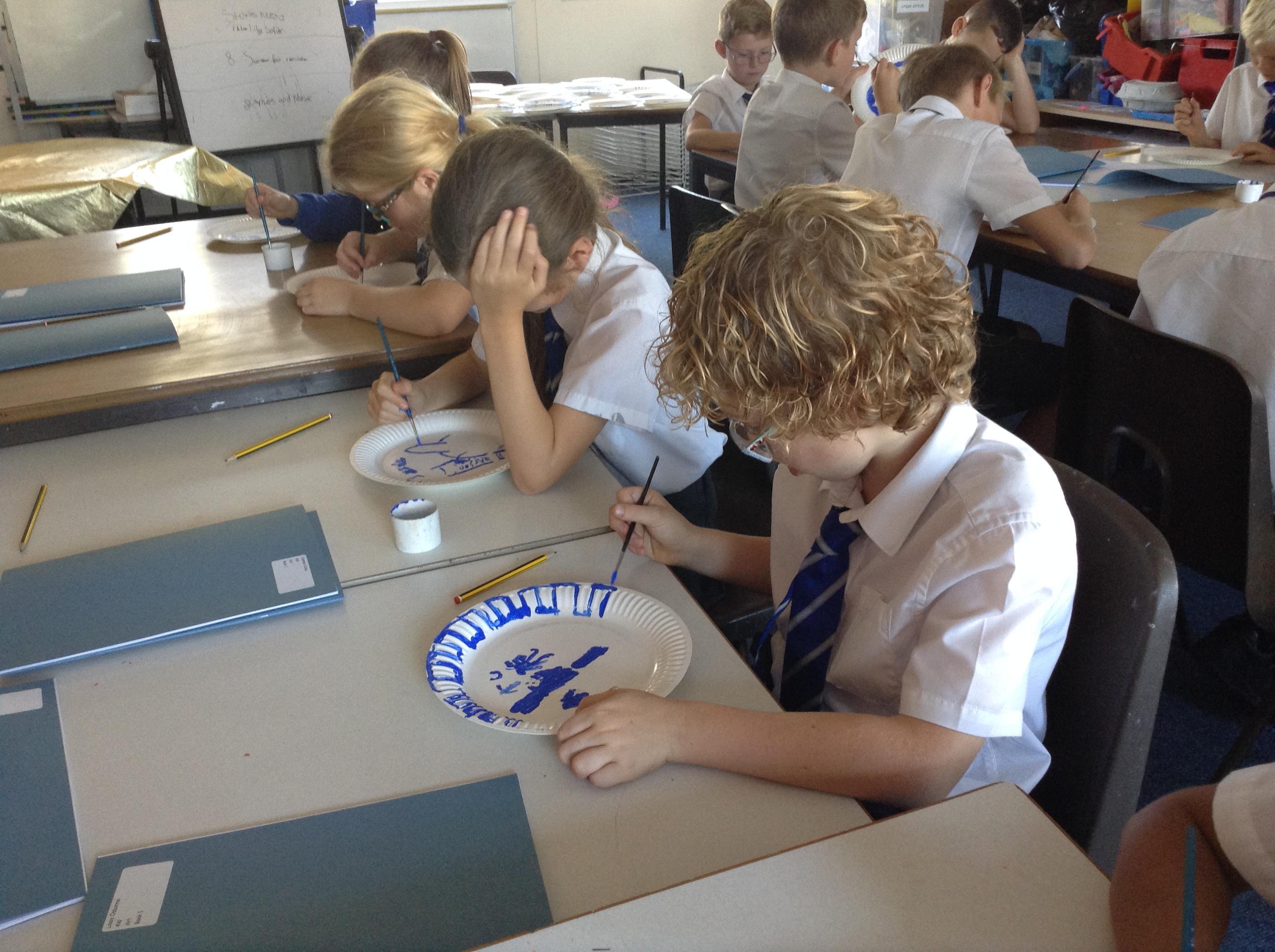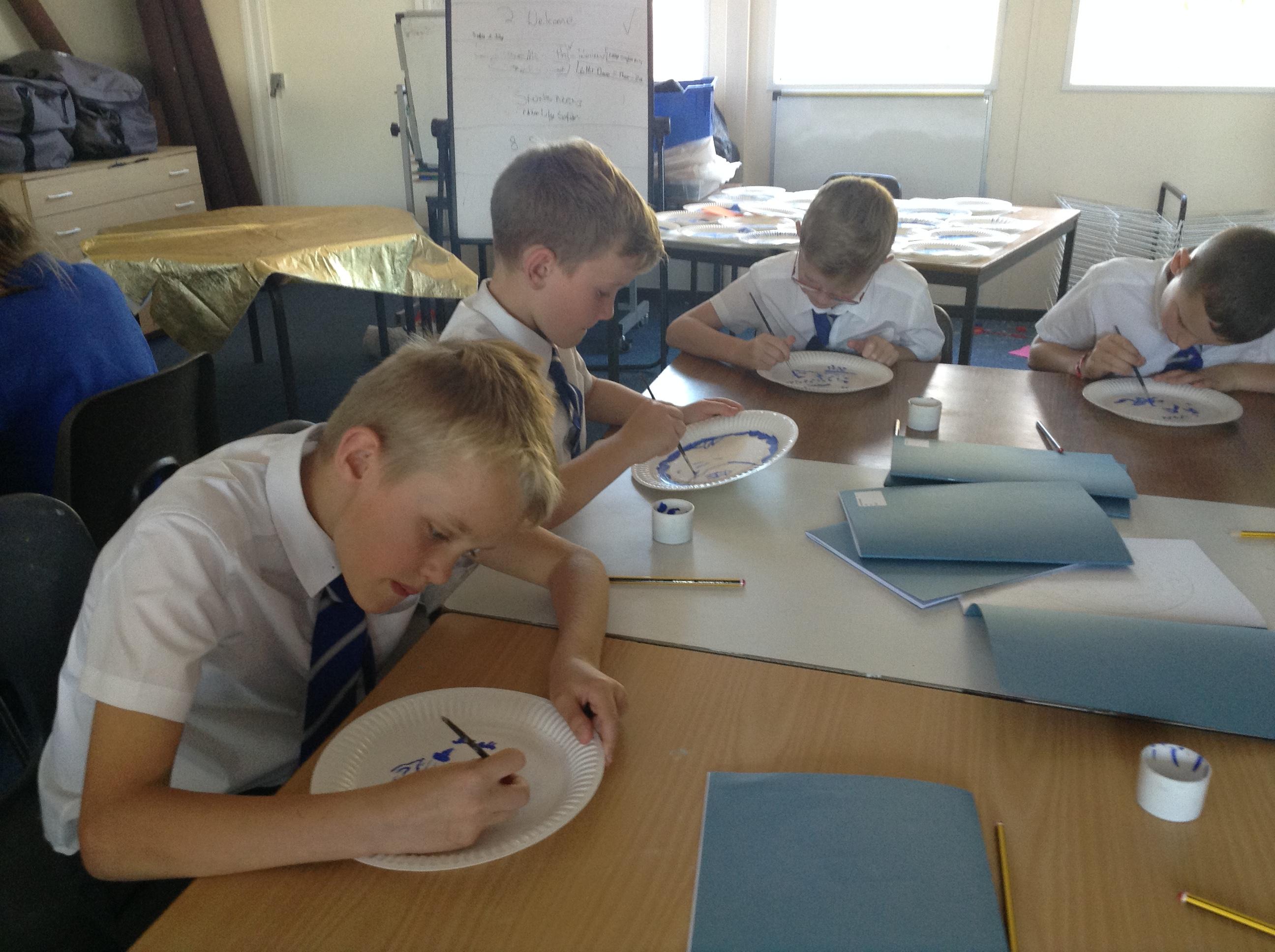 Artists at work! 4W creating Willow Pattern plates this afternoon. 3.10.18