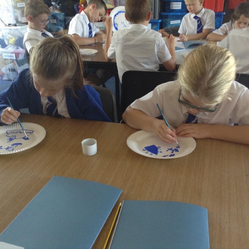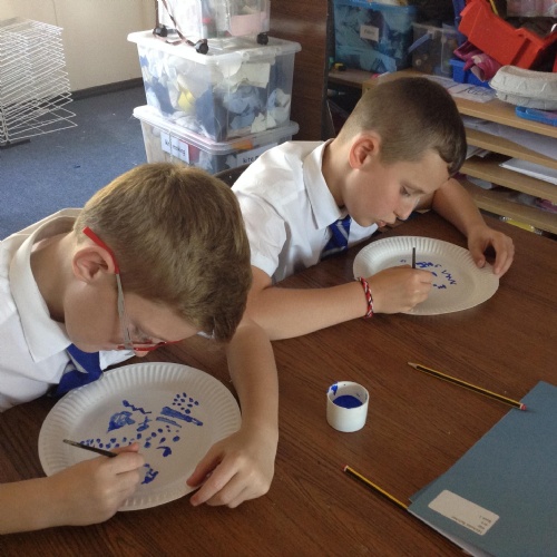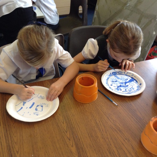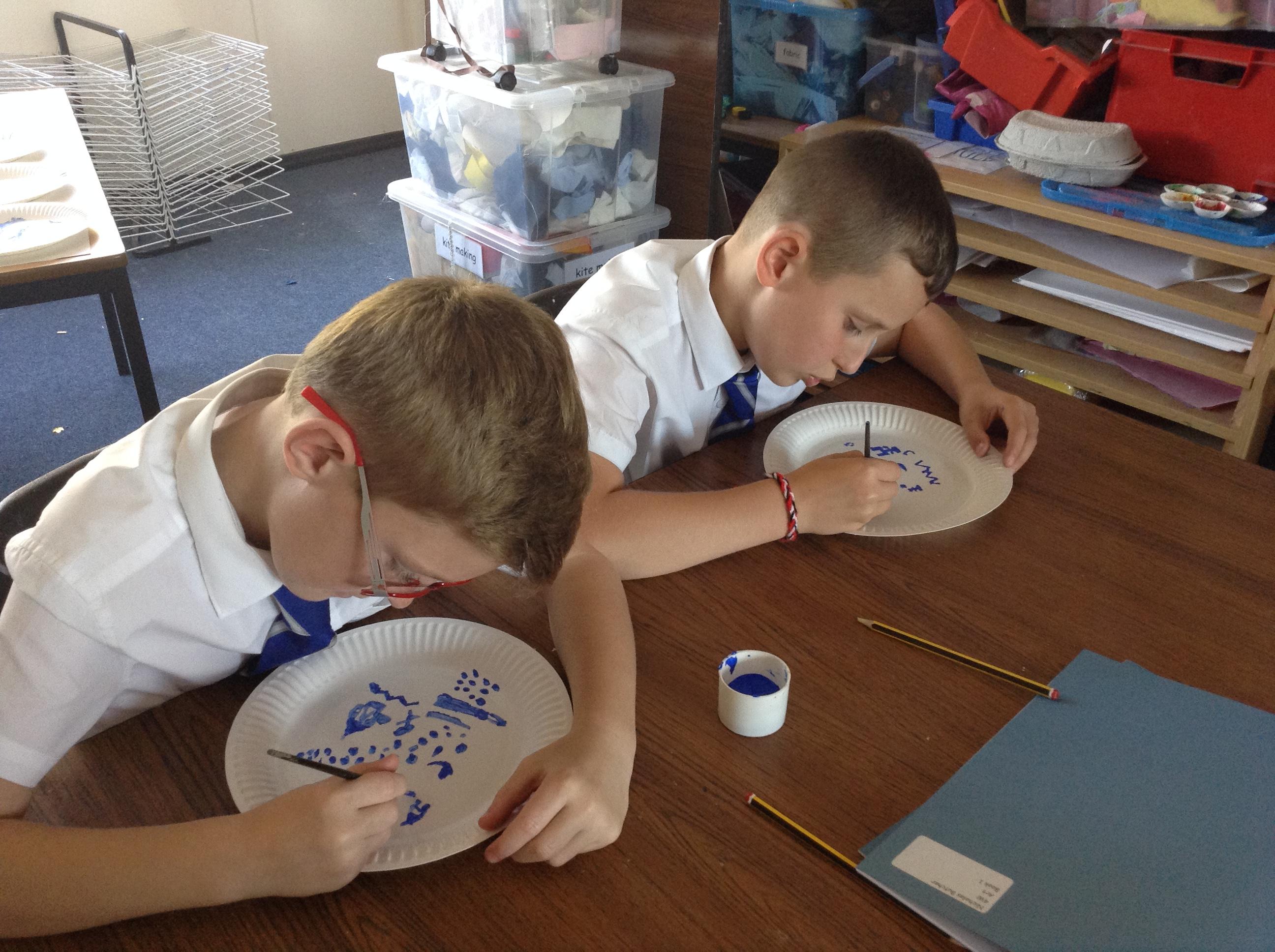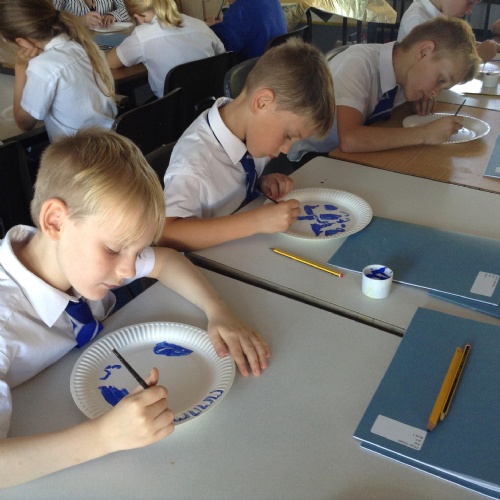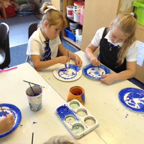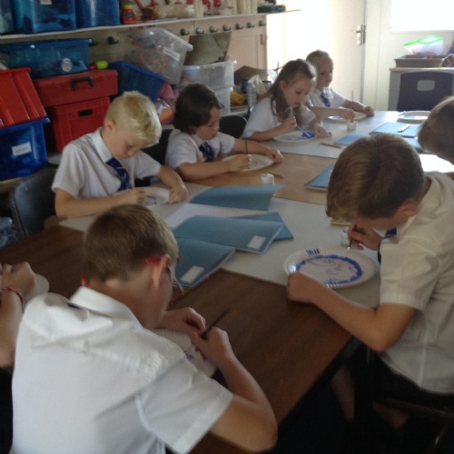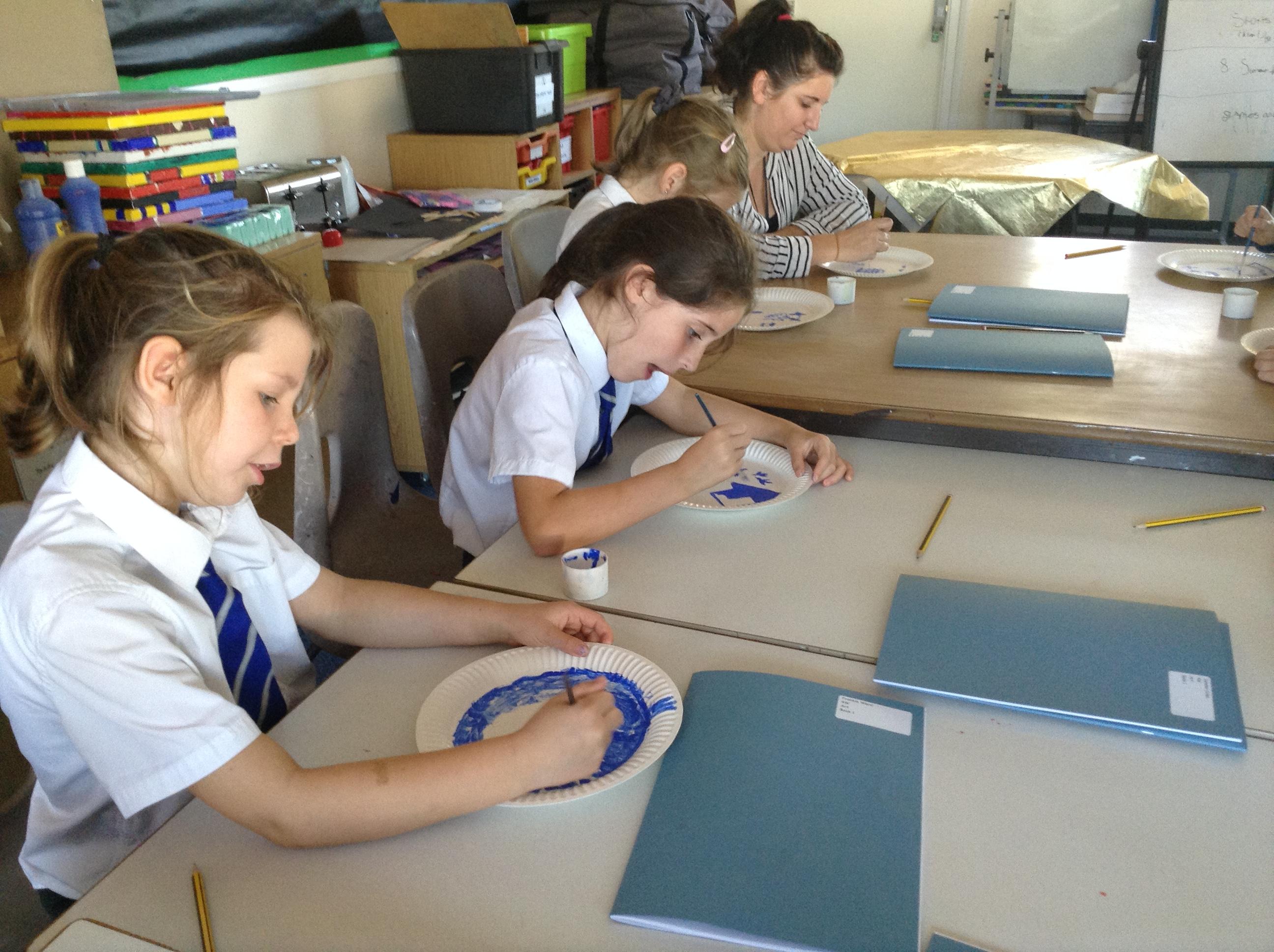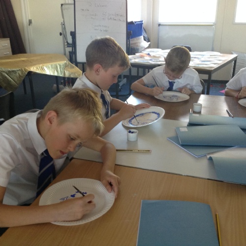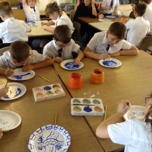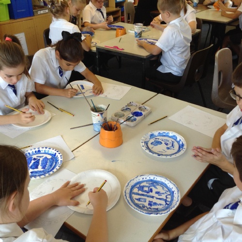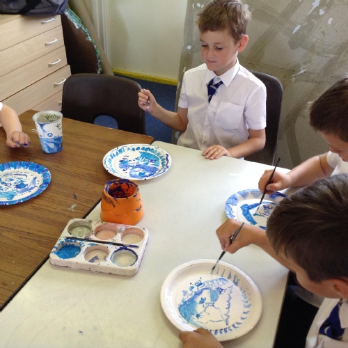 Artists at work! 4W creating Willow Pattern plates this afternoon. 3.10.18